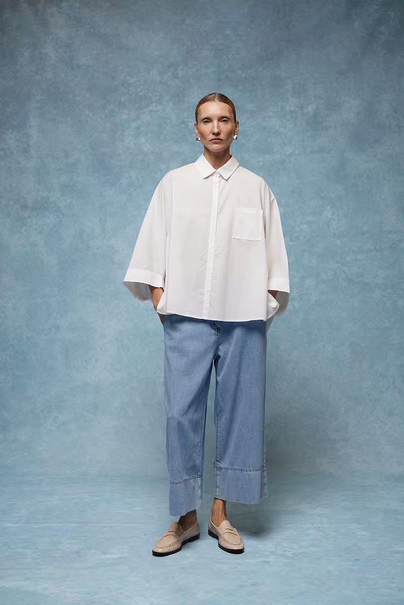 Sa coupe fluide et ample offre un tombé naturel et aérien, très agréable à porter, tout en conservant une vraie tenue. Il sublime la silhouette sans la marquer et s’adapte facilement à toutes les morphologies.